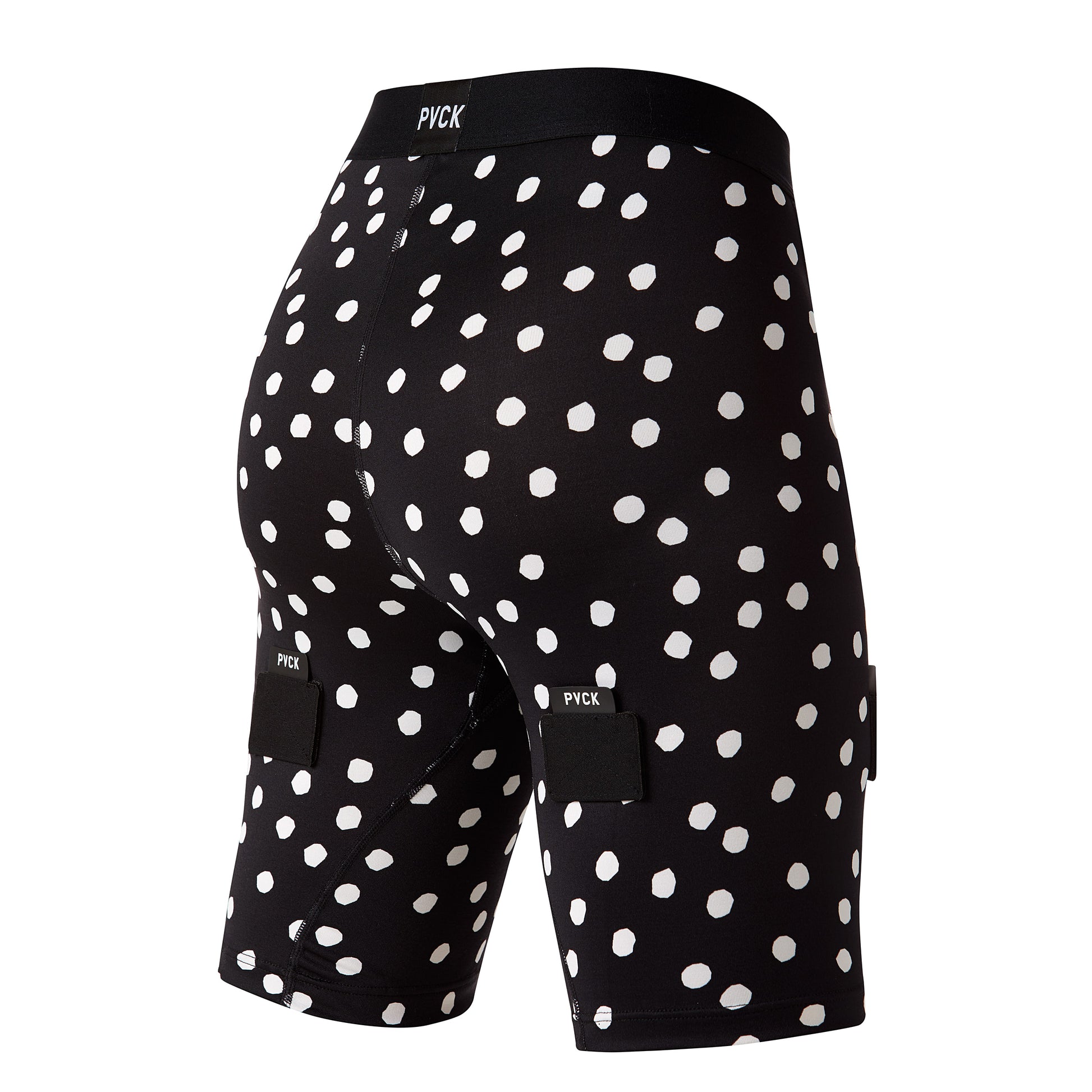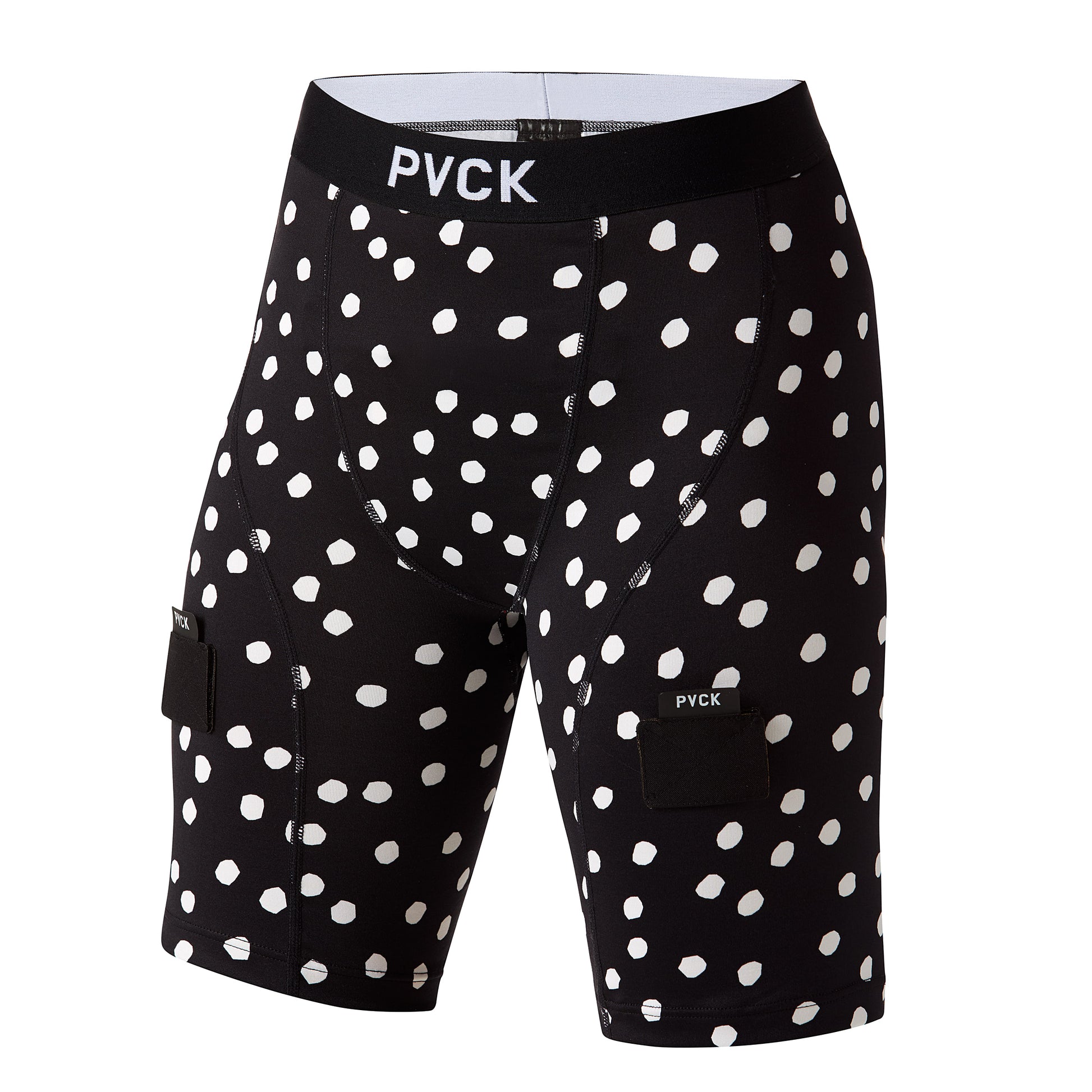Built for style, protection and comfort. Designed for female athletes. Pelvic protector with breathable pocket. Soft fitted waistband and sock securing Velcro tabs. Antibacterial with moisture wicking properties. 92% Polyester, 8% Spandex Knit, 230 GSM.